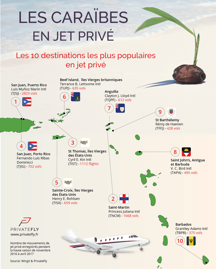 En été comme en hiver, les Caraïbes sont une destination populaire pour des vacances de luxe ou d'aventure. Il faut dire que la géographie de cette région comptant des milliers d'îles justifie de réserver un avion privé pour se déplacer.