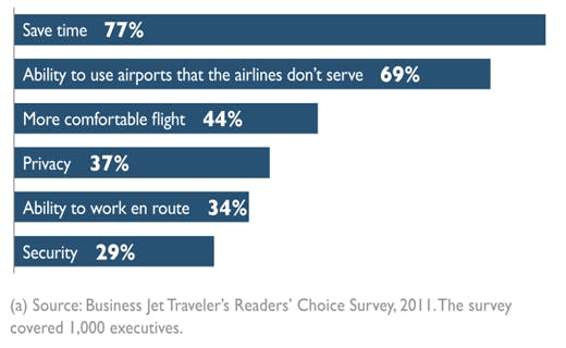 Ceci confirme le principal attrait de l'aviation d'affaires, son efficacité, qui lui permet de transporter plus rapidement et de manière directe des voyageurs, en leur évitant certains inconvénients, tels que les changements d'avions, la perte de temps ou la nécessité de passer une nuit sur place.