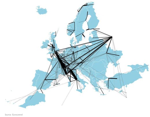 Le rapport évalue le nombre de vols entre l'Europe et les marchés émergents extérieurs à la zone à environ 49 000 par an.