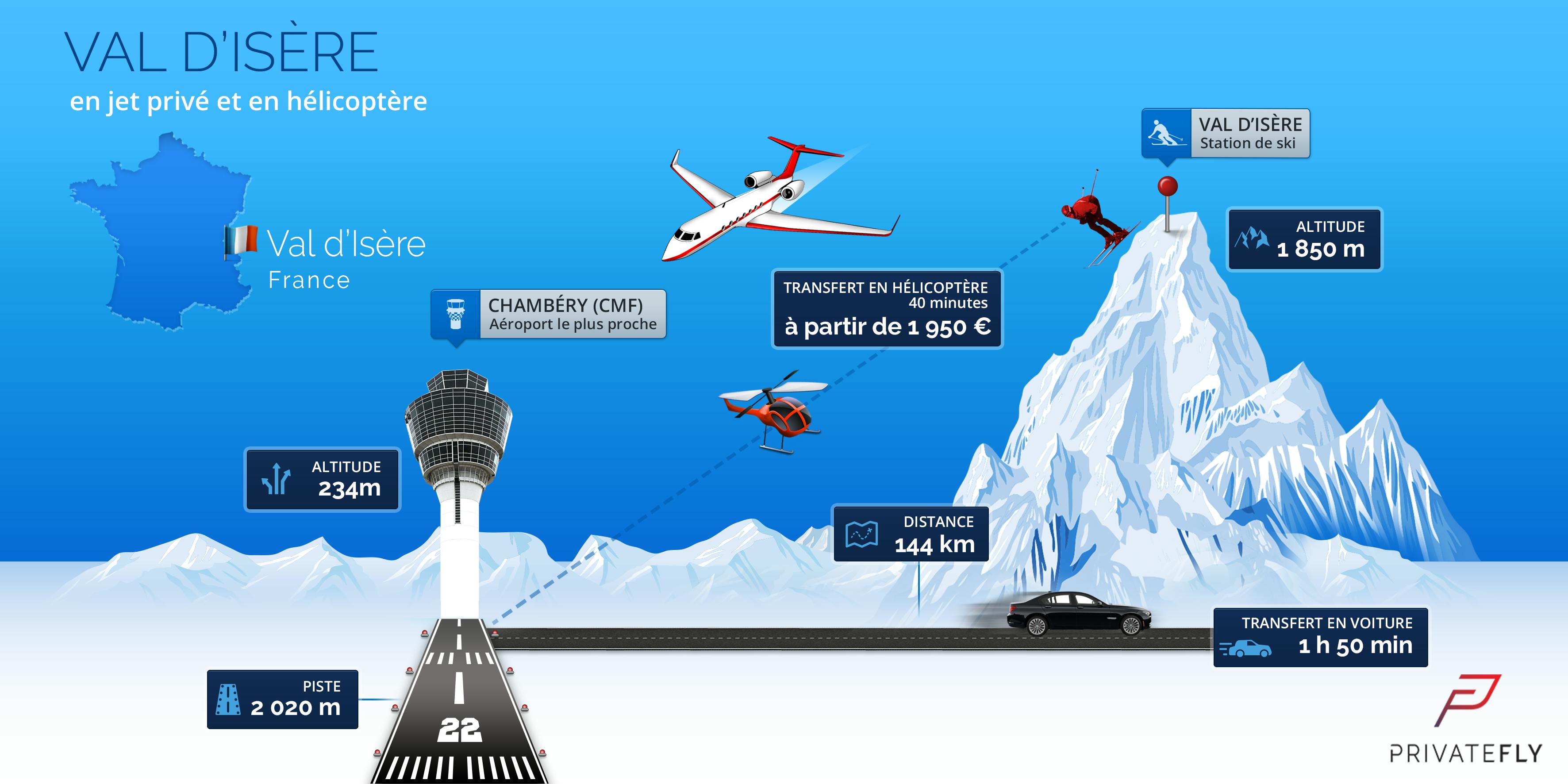 Niché au cœur des Trois Vallées, le plus vaste domaine skiable de la planète, Courchevel est une station prisée aussi bien pour la qualité de ses pistes que pour le raffinement de ses restaurants et des activités qu’elle propose. Bien que le village ait son propre aéroport, il n'existe pour l'instant qu'un seul modèle d'avion pouvant être affrété et atterrir à Courchevel can la piste est particulièrement courte et pentue.