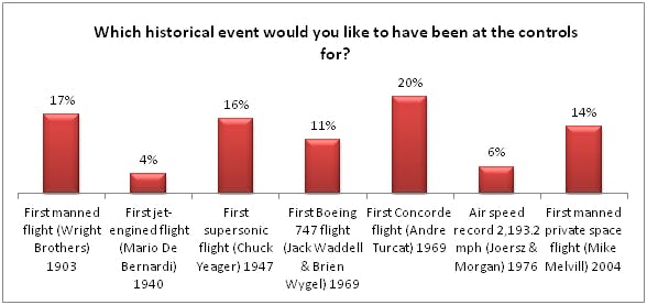 - La plupart des pilotes citent le premier vol du Concorde en 1969 comme l’évènement historique du secteur auquel ils auraient le plus aimé être associés.