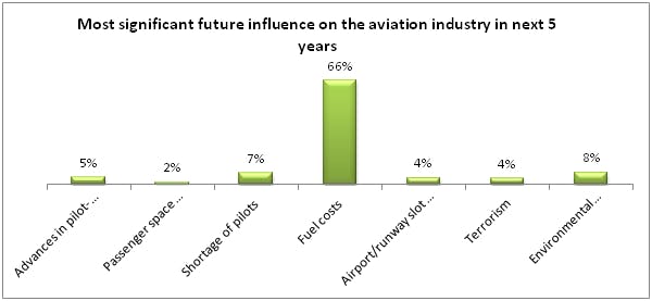 - Les pilotes ont identifié le facteur qui aura le plus d'impact sur le futur de l'aviation au cours des cinq prochaines années. Ils pouvaient faire leur sélection sur notre liste ou indiquer leur propre choix.