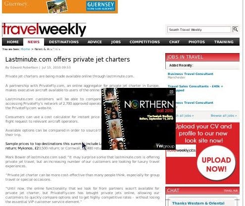 TRAVEL WEEKLY: Lastminute.com offers private jet charters