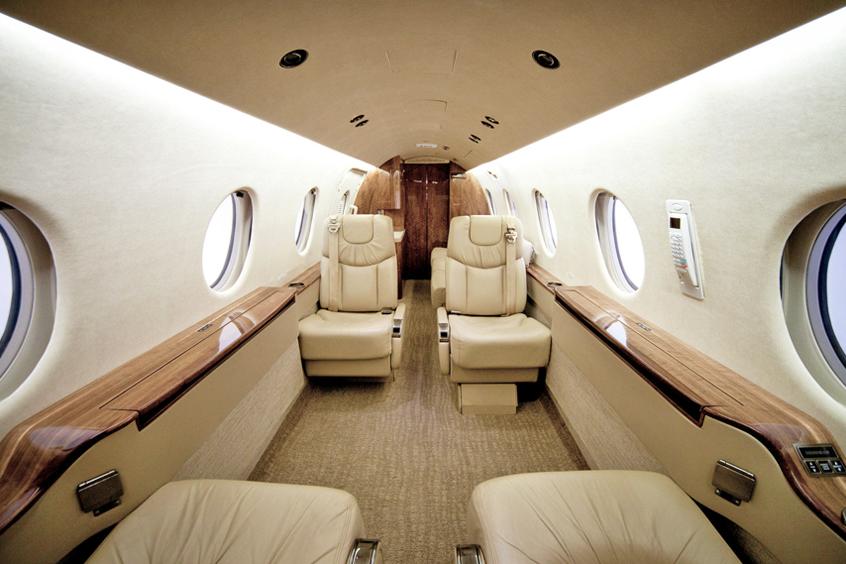 Six fauteuils sont installés en cabine et dotés d'une console de divertissement, un autre siège muni d'une ceinture de sécurité peut être ajouté dans l'espace toilettes. La cabine est également équipée de tables de réunion, d'un espace de rangement pour les rafraîchissements et de sièges en cuir.