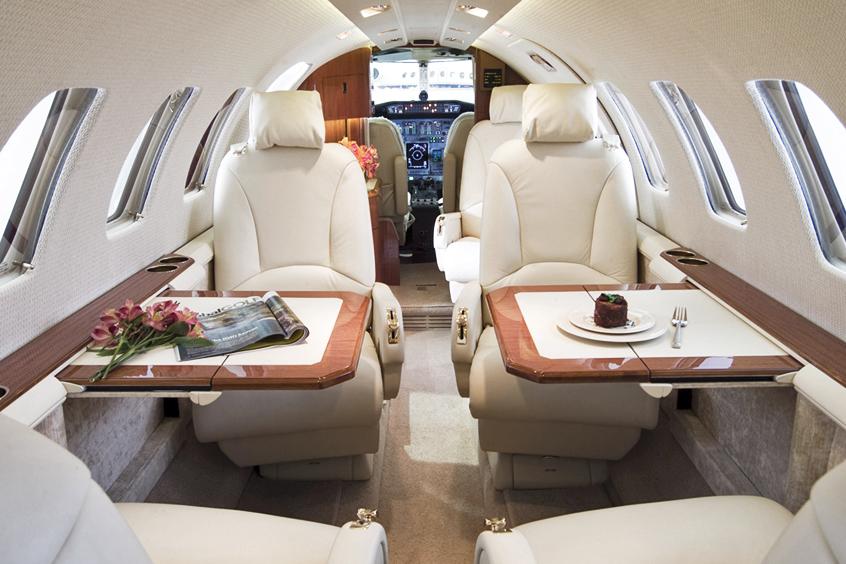 Sa cabine longue de 5,18 m est la plus vaste de sa catégorie et accueille confortablement jusqu’à 7 passagers. Son intérieur spacieux et silencieux est équipé de tables escamotables et d’appuis-tête réglables en hauteur pour plus de confort. Enfin, sa capacité totale d’emport de bagages (2 m3), répartie entre la soute et de généreux rangements en cabine, le distingue des autres jets légers.