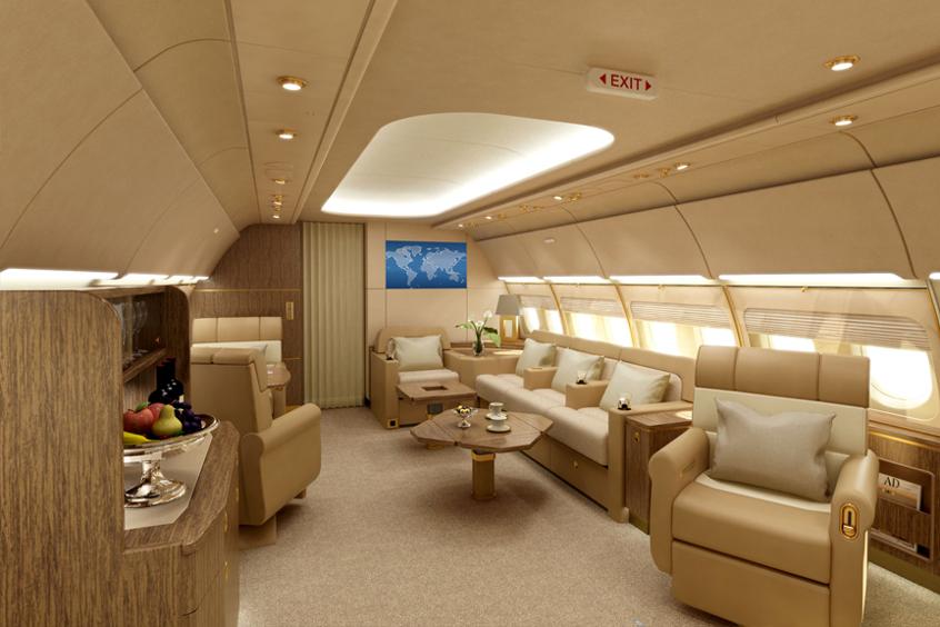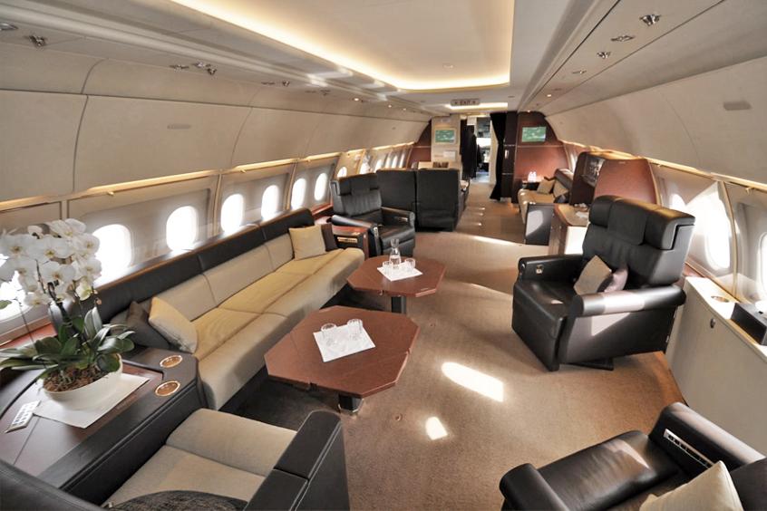 Conçu pour accueillir 18 passagers, son intérieur peut être réaménagé pour satisfaire les besoins de chacun. En général, la cabine est divisée entre un espace VIP comprenant bureau, salle de douche et chambre, et un salon confortable.