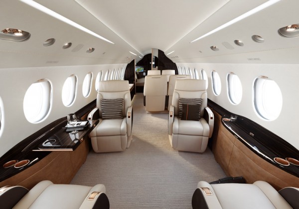 Son troisième moteur (emblématique chez la plupart des jets d'affaires de Dassault) lui permet d'accéder à des pistes courtes et ajoute un facteur de sûreté pour les vols de longues distances.