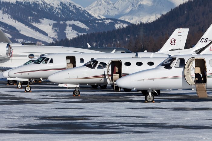 Mais contrairement à une voiture, un jet privé devra être entièrement débarrassé de la glace et de la neige qui le recouvrent pour pouvoir être utilisé.