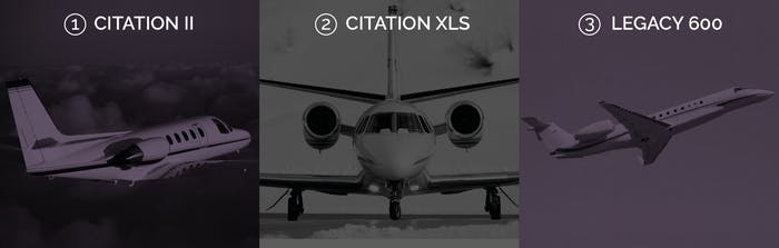 Idéal pour les trajets courts, le Citation II est économique et capable d'accéder aux petits aéroports européens. Son intérieur peut confortablement accueillir jusqu'à six ou sept passagers.