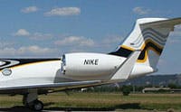 G-GALX = Richard Branson (l’immatriculation n’est pas la seule touche personnelle de cet avion puisque le dessin figurant sur son empennage est en fait l'œil de Branson !)
