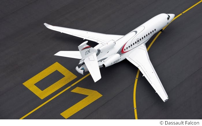 En 2014, Dassault a présenté son futur Falcon 8X, un triréacteur à très long rayon d'action (6 450 milles nautiques). Plus vaste et encore plus performant que son prédécesseur le 7X, il conserve sa capacité à emprunter de petits aéroports.