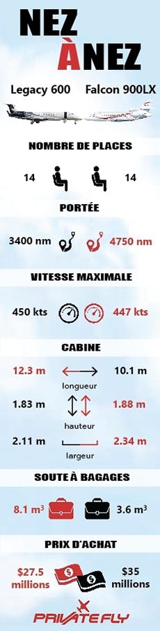 NEZ À NEZ : Le Legacy 600 et le Falcon 900LX
