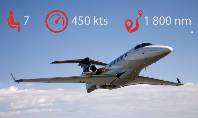 Nombre de sièges : Jusqu'à 7 Vitesse : jusqu'à 450 ktsPortée : 1 800 nm